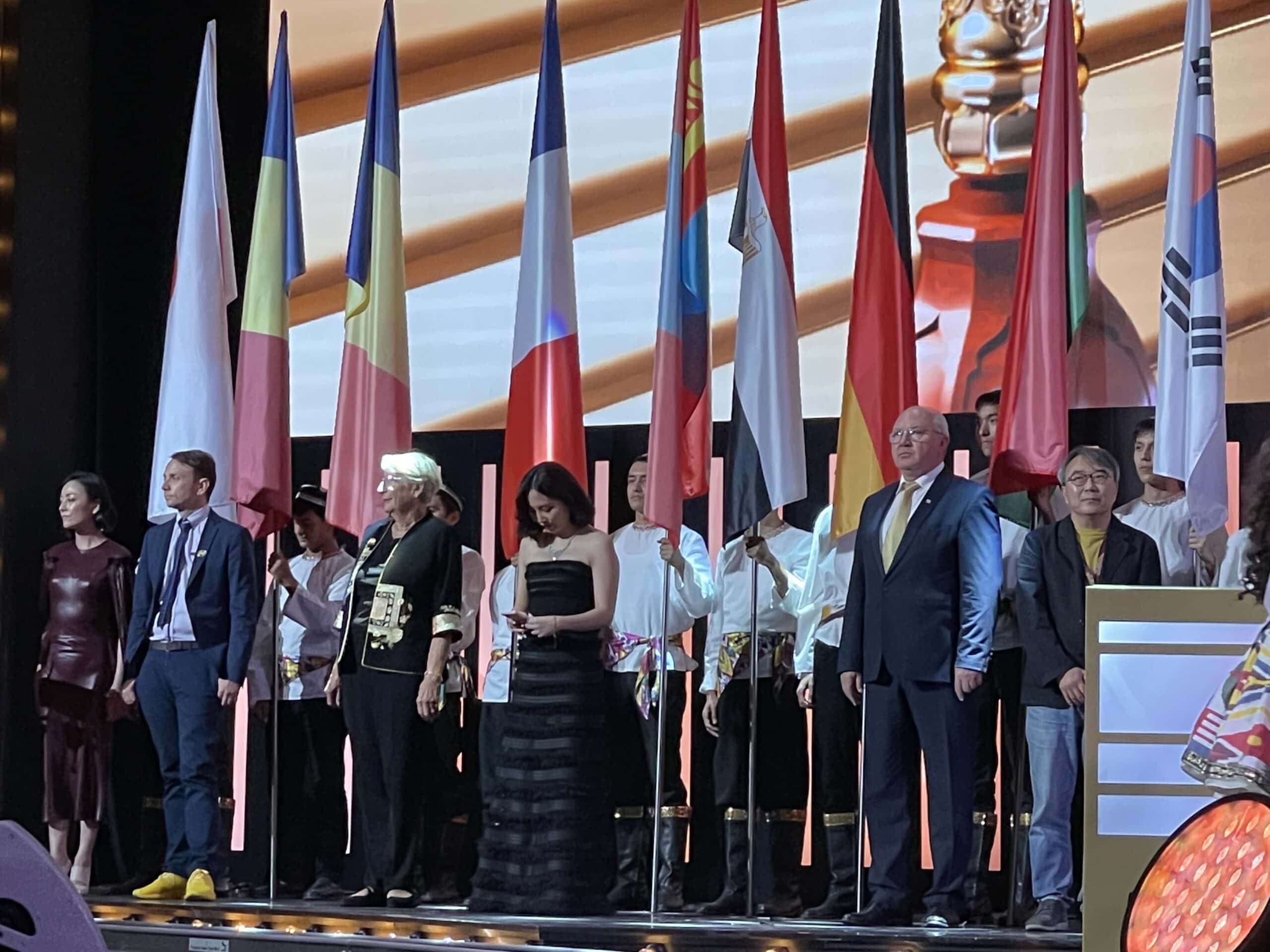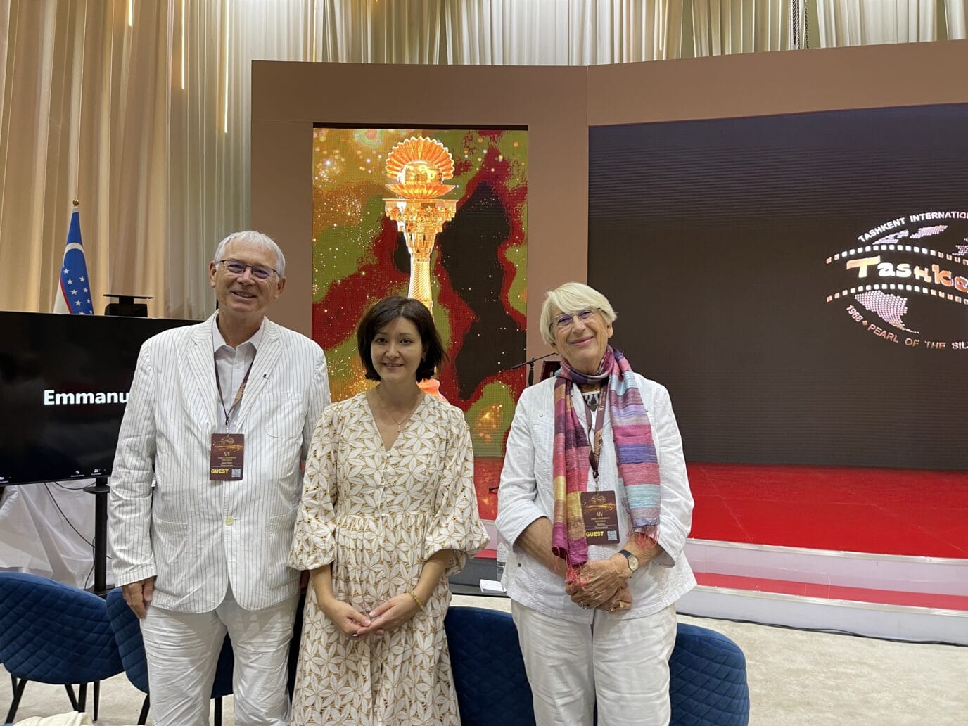 Son Excellence l’Ambassadrice de France en Ouzbékistan, Madame Aurélia Bouchez, présidait, sur le tapis rouge, la délégation française composée de Laurent Oriol, conseiller culture, Emmanuelle Faucilhon, attachée audiovisuelle, Fabrice Marache, réalisateur (Noirs, les Hussards), Samuel Aubin, réalisateur et écrivain (Istanbul à jamais, Le Pommier rouge d’Almata-Ata), Martine et Jean-Marc Thérouanne.