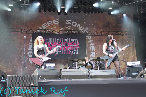 Au tour de CRUCIFIED BARBARA à faire retentir leur rock’n’roll pêchu. Elles mettent le feu devant des festivaliers chauffés par le soleil devenant de plus en plus brûlant…. Le soleil bien sur.