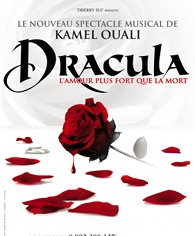 Dracula, le nouveau spectacle musical de Kamel Ouali s’annonce comme l’un des événements très attendu de cette fin d’année 2011. Inspiré librement du roman de Bram Stoker, Dracula met en scène 50 artistes danseurs, chanteurs, artistiques de cirque et comédiens dans des décors féériques, accompagnés d’effets spéciaux inédits. Le Spectacle met en avant l’histoire de l’amour impossible entre Dracula et Mina. Inspiré de la personnalité complexe et énigmatique du mythique héros, loin de la créature terrible et sanguinaire, Kamel Ouali nous fait partager le destin solitaire de ce vampire troublant, attachant, intrépide et sensible. Sur des chansons originales produites par Warner Music France, la troupe de chanteurs, comédiens et danseurs nous entraînera à travers un univers onirique, tantôt obscur, tantôt ludique, aux décors et costumes dont l’extrême modernité se partagera aux réminiscences baroques.