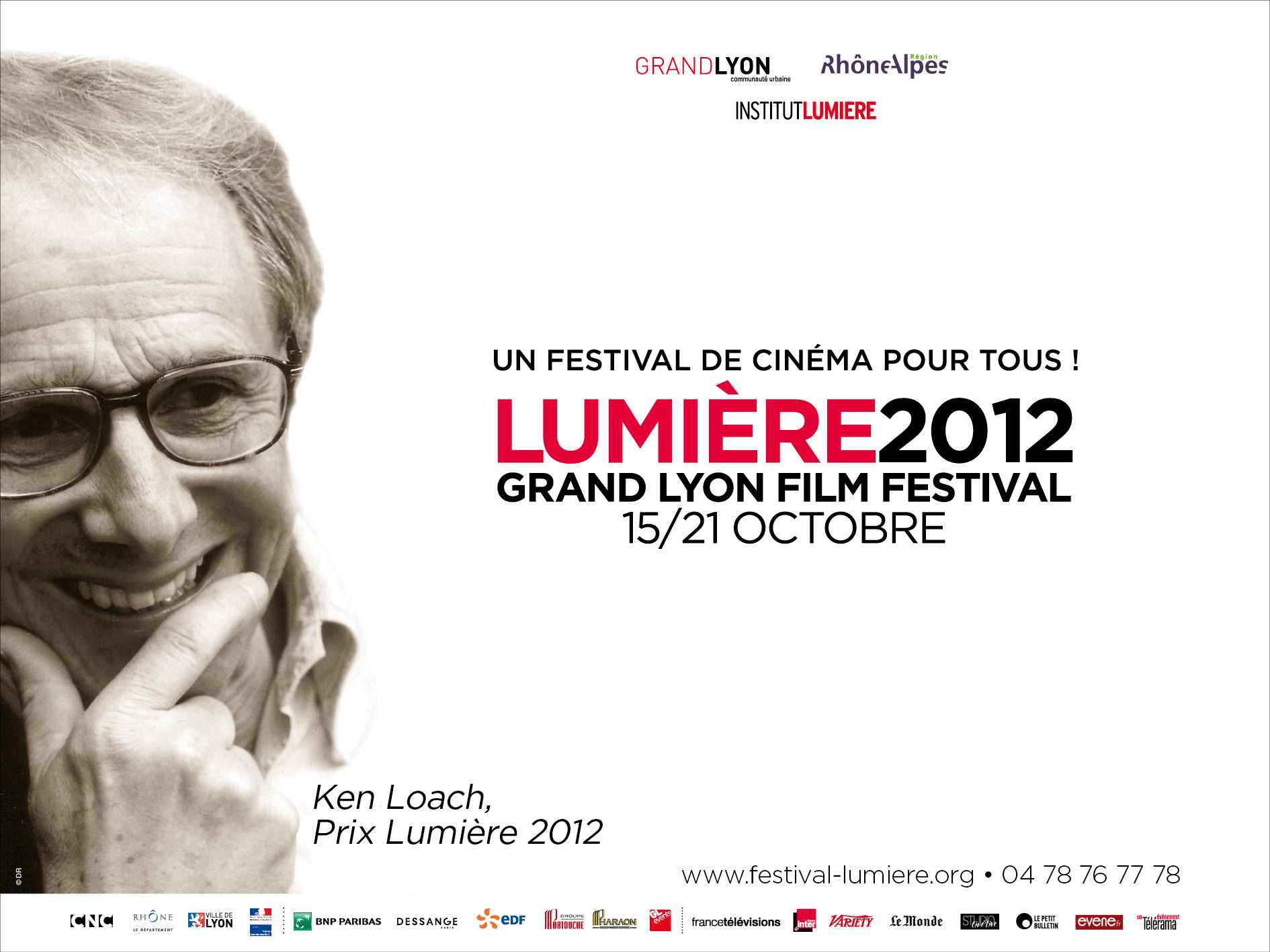 La prochaine édition du Festival Lumière de Lyon se déroulera du 15 au 21 octobre 2012 verra le fameux prix être décerné au cinéaste anglais Ken Loach. Il succèdera donc à Clint Eastwood, Milos Forman et Gérard Depardieu (conférence de presse ici). Bien entendu nous vous tiendrons informés de la liste des invités et du programme, et une fois de plus, CINEALLIANCE sera là pour couvrir l’événement.