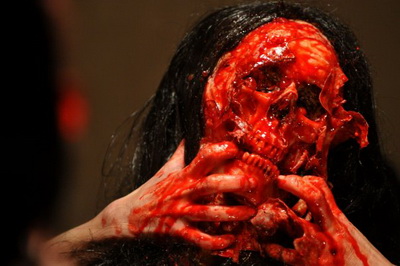 J’oublie plein de choses que je pourrais vous raconter encore, mais la plupart du temps voir un réalisateur heureux devant son moniteur parce qu’on réussit à lui recréer ce qu’il a imaginé est la plus belle des choses , c’est pour cela que j’ai beaucoup d’enthousiasme à bosser avec des jeunes réalisateurs, des Pierre Guillaume, David Lucchini, Rodolphe Bonnet, Kevin Lecomte, David Hourregue etc. Dernièrement sur le film « Ouvert 24/7 » on a tenté de faire un hommage à la scène de visage arraché de Poltergeist. Il fallait entendre Thierry Paya exprimer son enthousiasme pendant le tournage alors que l’on déchiquetait notre marionnette avec des litres de sang et de matière visqueuse… L’enthousiasme et la passion permettent tout je pense… Donc j’ai beaucoup d’excellents souvenirs !