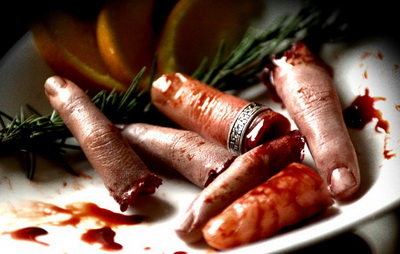 Pas mal de choses ! Il y a des blessures comme des morsures ou des cicatrices mais aussi de plus gros effets comme des morceaux de cadavres en divers états, un personnage qui se fait arracher un bout de mâchoire, des doigts découpés, un maquillage sur Richard Sammel où son personnage se retend la peau en une sorte d’ « auto-lifting » improbable et d’autres choses encore !!! -)