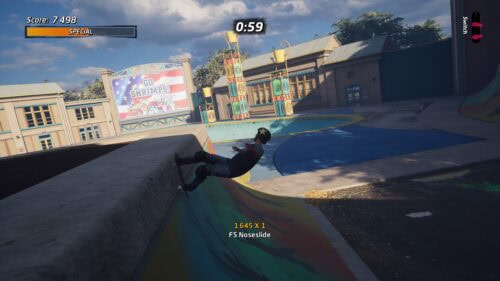 Ne cherchant pas à réinventer la poudre, ce remake ne s’encombre d’aucun artifice. Exit le cel-shading hideux de THPS 5 ou la planche physique de TH Shred : on revient ici aux bases, les vraies, à grands renforts de tricks et combos impossibles, de figures spéciales à réaliser, de scores à atteindre, d’objets à récupérer (lettres S.K.A.T.E, cassettes secrètes, items divers…) et surtout de manches laissant deux minutes chrono pour remplir lesdits objectifs. Et pas de panique si vous avez des difficultés : les objectifs sont indépendants les uns des autres, si bien que vous pourrez très bien choisir de dédier un premier run à un objectif, le run suivant à un ou deux autres objectifs, et ainsi de suite. De quoi permettre d’améliorer vos skills et découvrir le niveau petit à petit tout en offrant un vrai éventail de possibilités à chaque run.