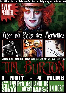 Le vendredi 19 mars 2010 à partir de 20H00 au Cinéma Henri Verneuil de la Valette-du-Var4 films de Tim Burton dont « Alice au pays des merveilles » en avant première !