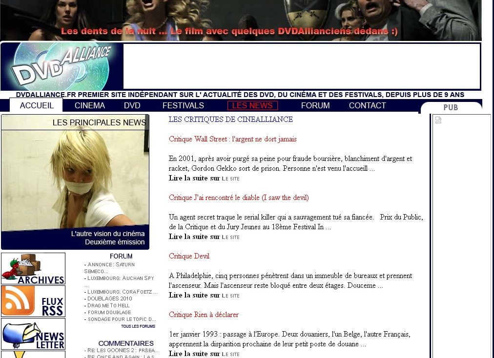 Accueil Information Cinealliance Cinealliance.fr is born Après autant d’années, DVDAlliance.fr se transforme en Cinealliance.fr. Nous remercions toutes les personnes qui ont travaillé sur le site pendant toutes ces années.