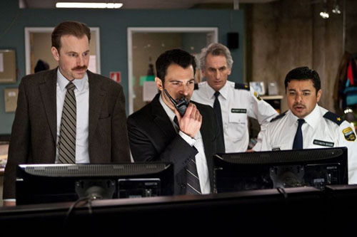 De ce point de vue, le cinéaste se montre efficace en alternant moments de frayeur à l’intérieur de la cage (à la faveur de coupures de courant qui débouchent immanquablement sur l’horreur) et tentatives d’explications au dehors par le biais d’un moniteur de contrôle privé de son.
