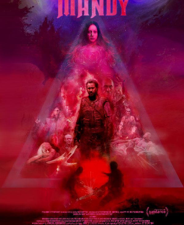 Second film pour le canadien Panos Cosmatos, après Beyond the black rainbow, Mandy est produit par Elijah Wood et interprété par Nicolas Cage et Andrea Risebourough.