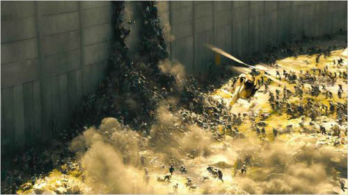 Car oui, en cette période où les blockbusters alignent les déconvenues (Man of Steel, Iron Man 3…), WWZ a d’emblée un mérite : ne pas décevoir. Toutes proportions gardées, hein ! On est pas venu voir le scénario du siècle, mais des hordes de zombies, des vraies. De celles qui s’empilent comme une armée de fourmis pour se hisser à des hauteurs vertigineuses ou qui se répandent en ville comme un tsunami, bouffant tout le monde (ou presque) sur leur passage. Et de ce côté, le contrat est largement rempli, les stars du film étant incontestablement ces infectés new-age très bien maquillés ou modélisés et qui, en plus, ont le mérite de filer régulièrement les chocottes, même si on est pas non plus dans REC. Pour le reste par contre, le constat sera plus mitigé.